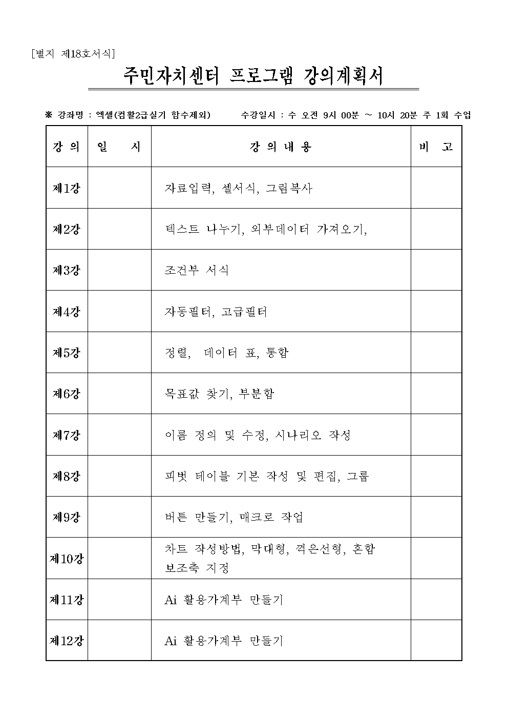 ㄴ 신청자가 5명 미만인 경우 폐강하며, 강사님과 협의에 따라 폐강(휴강) 및 강의시간 조정 가능합니다.